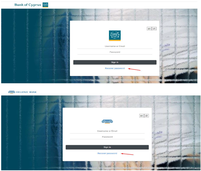 3. Επιλέξτε «Recover Password/Ανάκτηση κωδικού πρόσβασης»