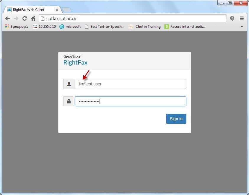 1. Για να αποκτήσετε πρόσβαση στην υπηρεσία ανοίξτε το φυλλομετρητή σας (web browser) και πληκτρολογήστε https://cutfax.cut.ac.cy